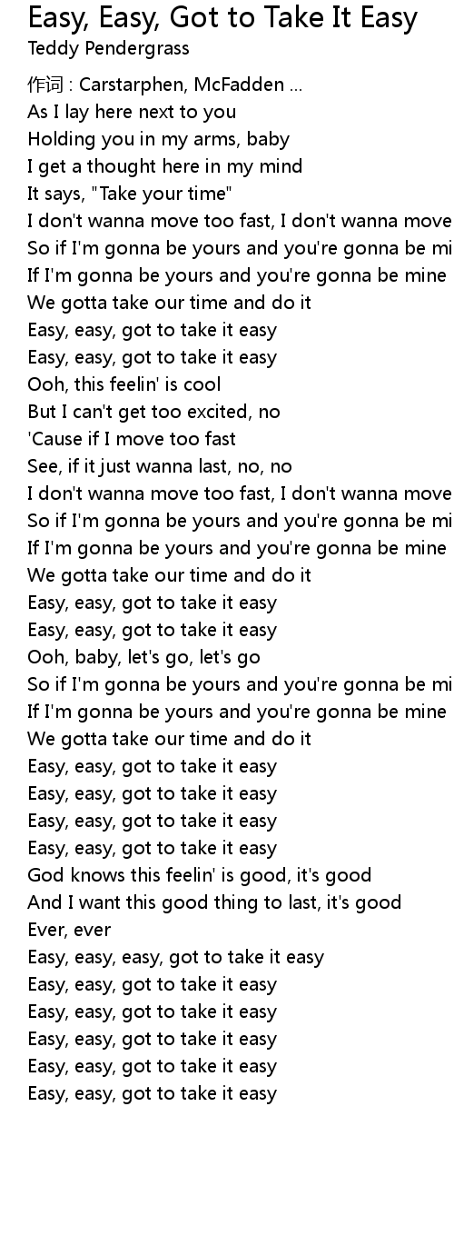 | Easy, easy, got to take it easy |