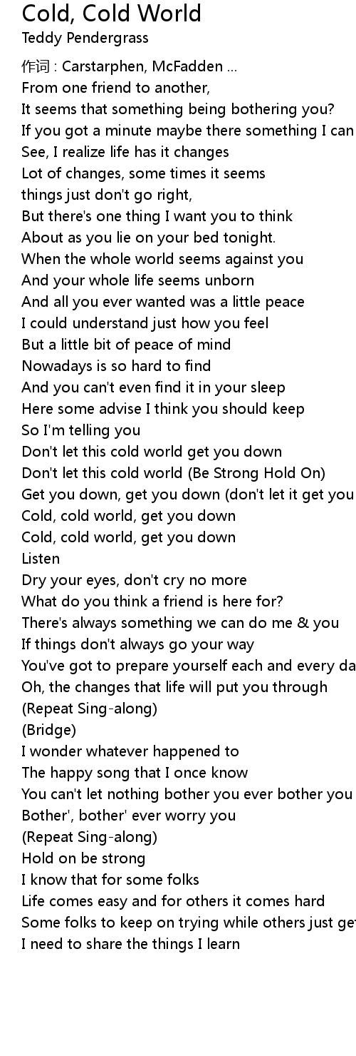 | Cold, cold world, get you down | |