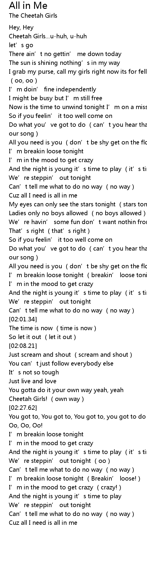 | [00:04.80] | Cheetah Girls... uhuh, uhuh |