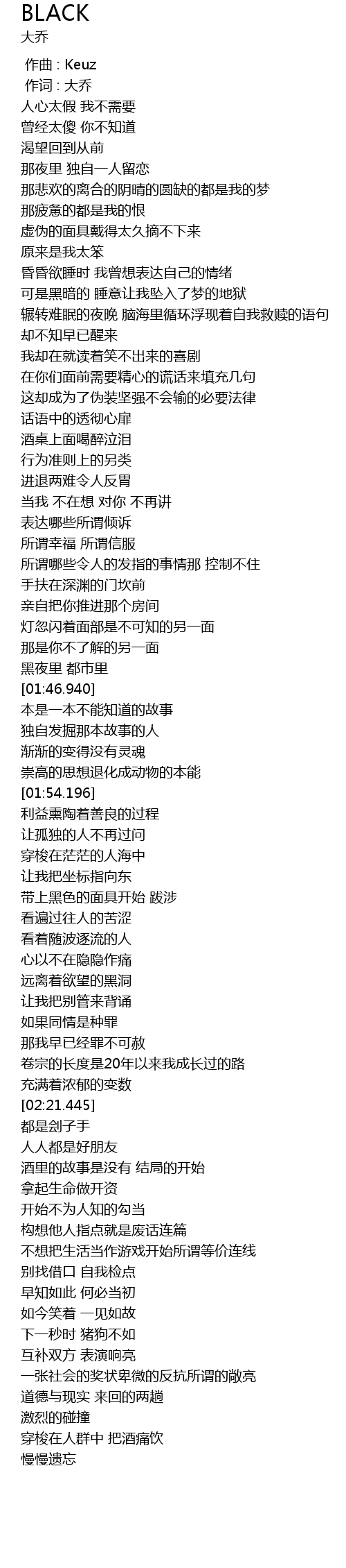 | [02:03.193] | 带上黑色的面具开始 跋涉 |
