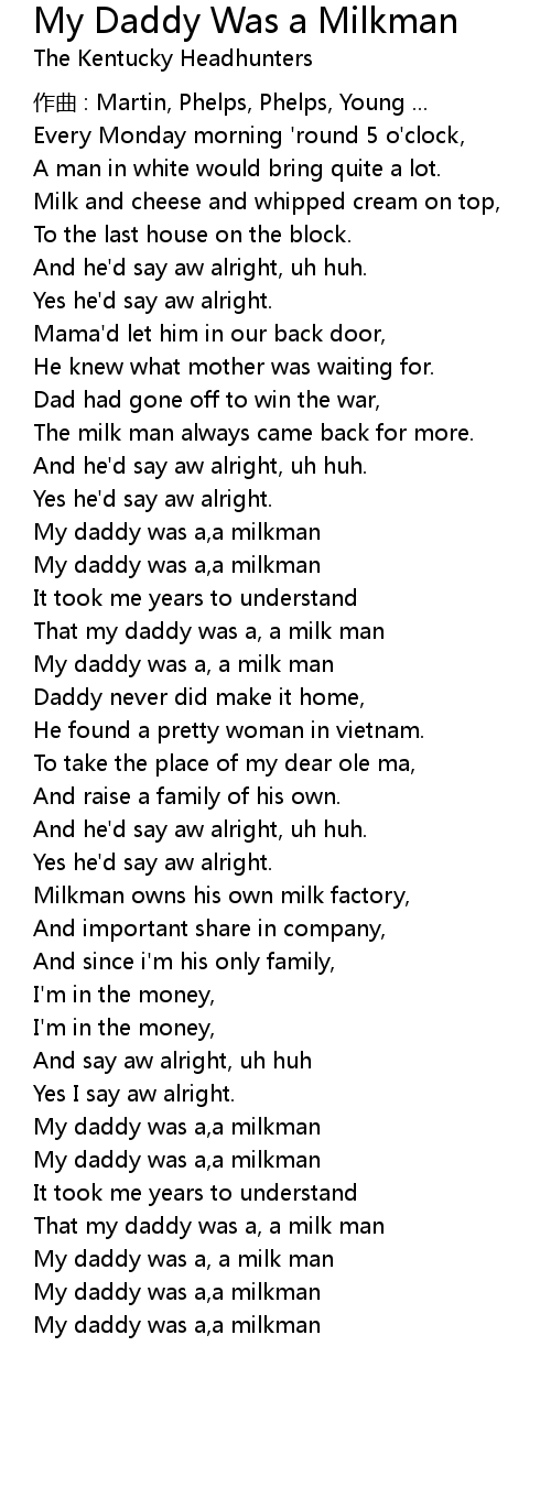 | My daddy was a,a milkman | |