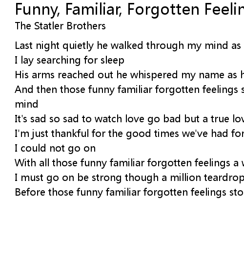 And then those funny familiar forgotten feelings started walkin' all over my mind