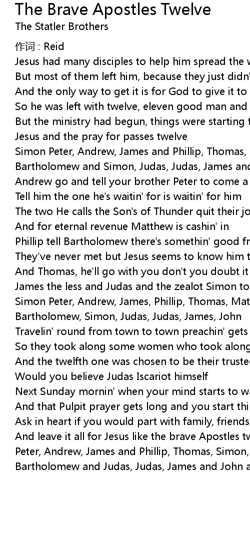 | And leave it all for Jesus like the brave Apostles twelve | |