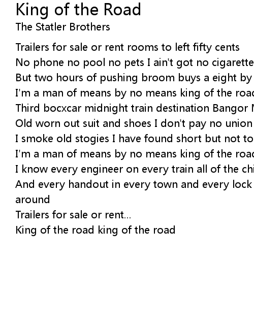 King of the road king of the road |