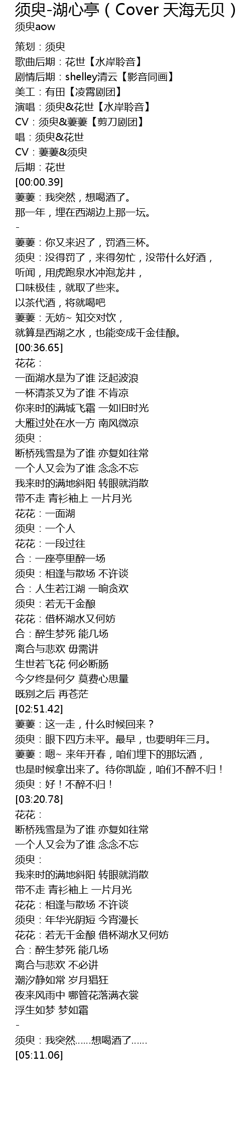 | Song | 须臾-湖心亭(Cover 天海无贝) |