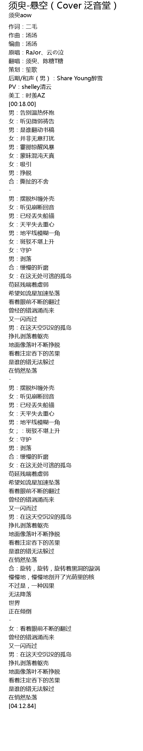 | Song | 须臾-悬空(Cover 泛音堂) |