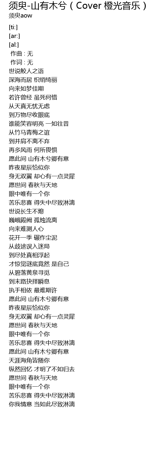 | Song | 须臾-山有木兮(Cover 橙光音乐) |