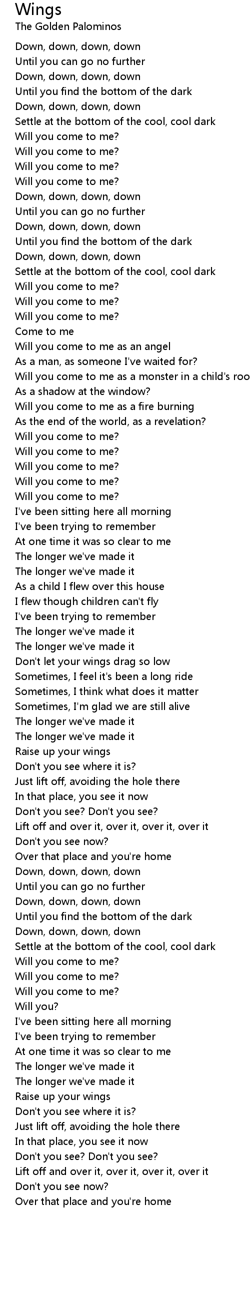 Don't let your wings drag so low |