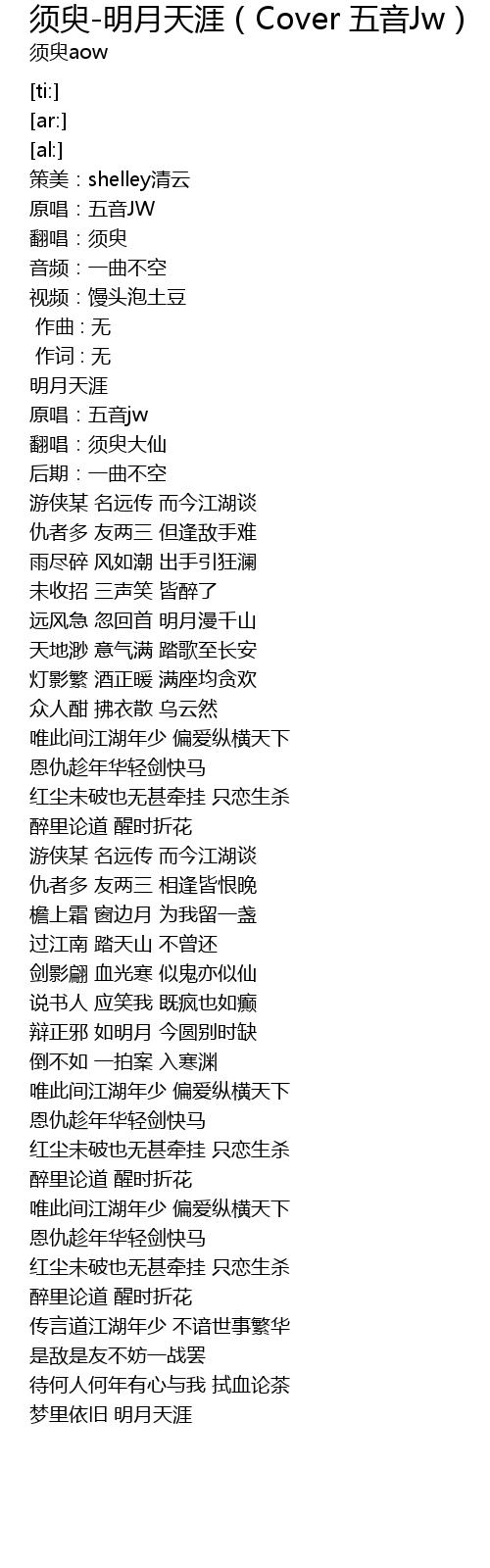 | Song | 须臾-明月天涯(Cover 五音Jw) |