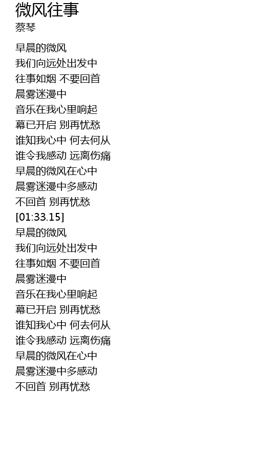 | [01:08.00] | zǎo chén de wēi fēng zài xīn zhōng |