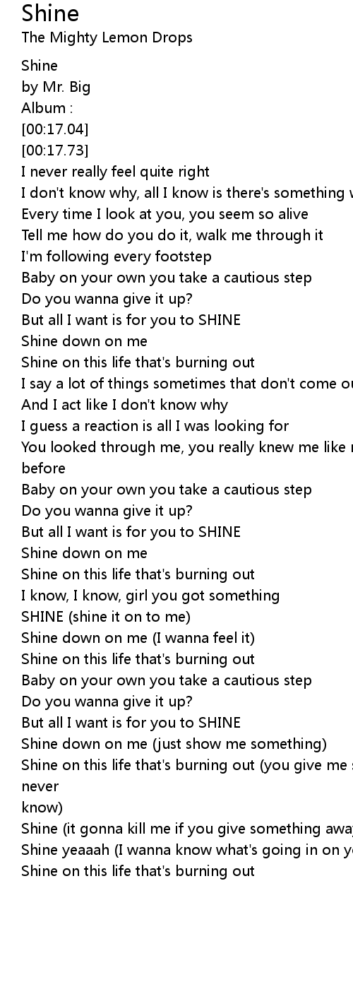 Shine yeaaah (I wanna know what's going in on your mind) |