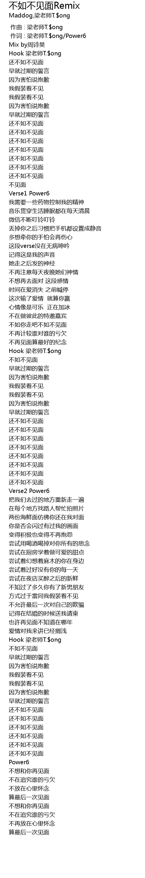 | [00:01.000] | 作词 : 梁老师T.$ong/Power6 |