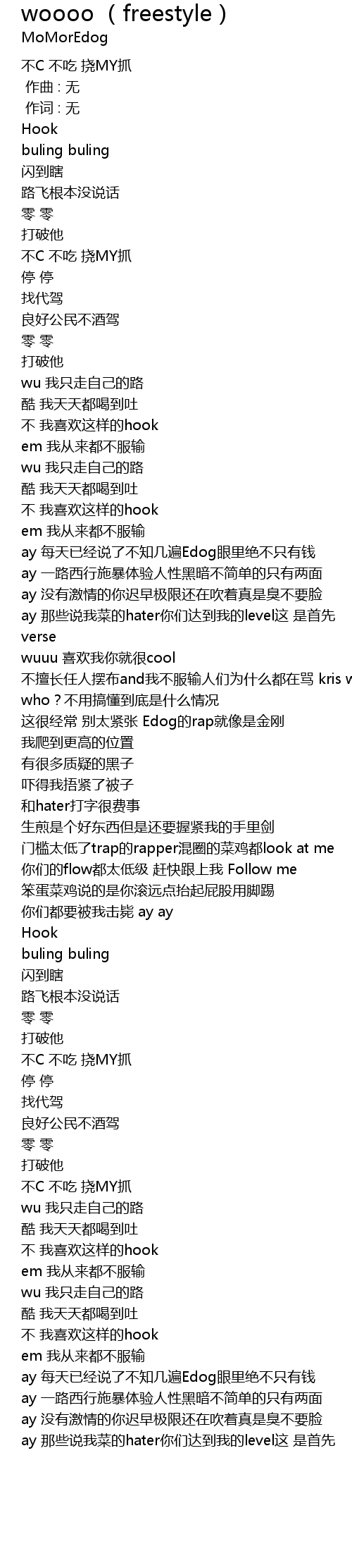 | [01:29.00] | 门槛太低了trap的rapper混圈的菜鸡都look at me |