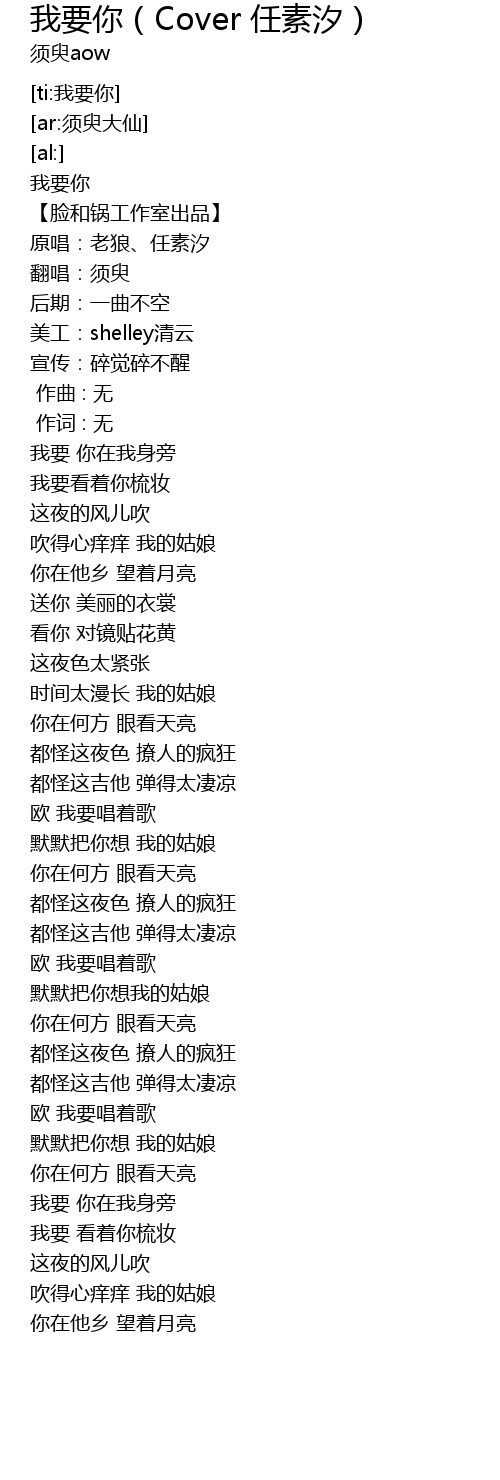 | [01:33.58] | 默默把你想 我的姑娘 |