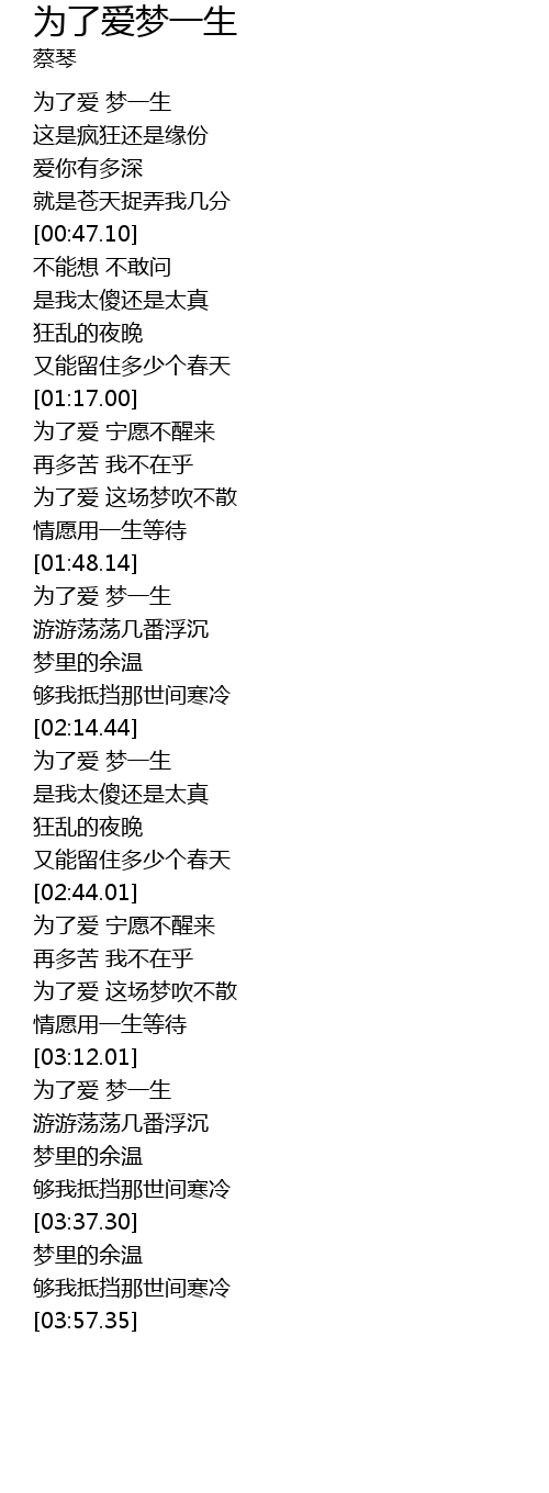 | [02:45.71] | 为了爱 宁愿不醒来 |