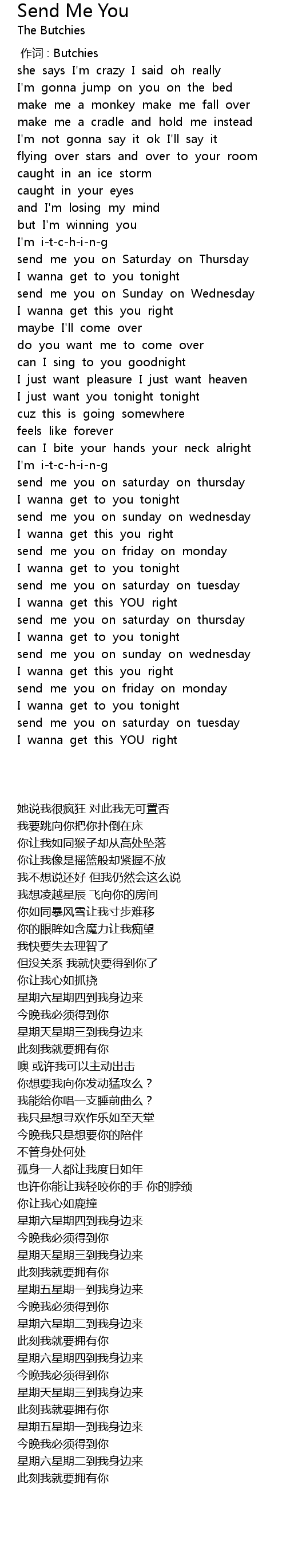 | [00:32.357] | send me you on Sunday on Wednesday |
