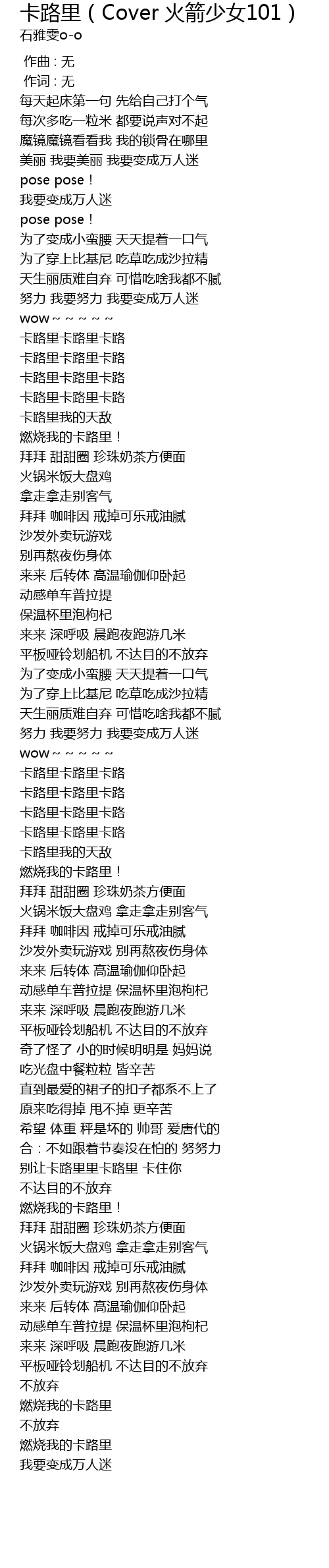 | [01:02.71] | kǎ lù lǐ kǎ lù lǐ kǎ lù |