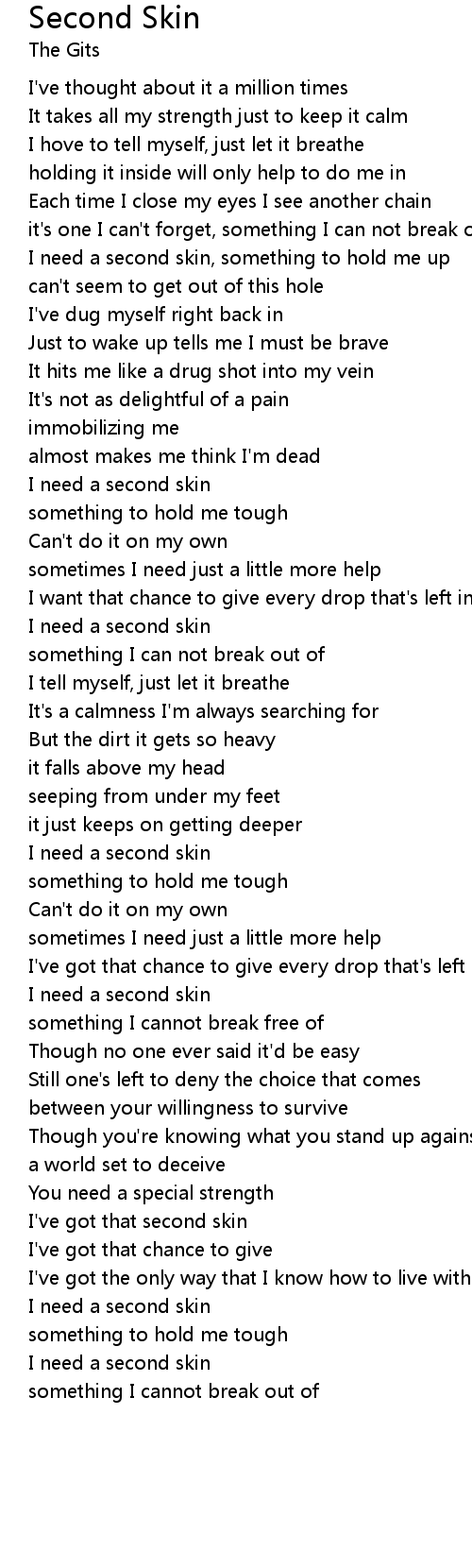 I've got that second skin |