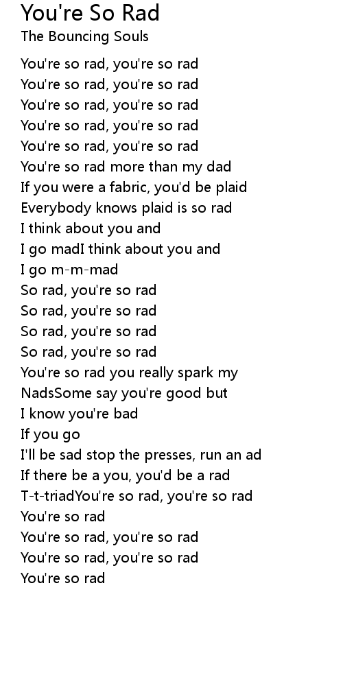 You're so rad, you're so rad |