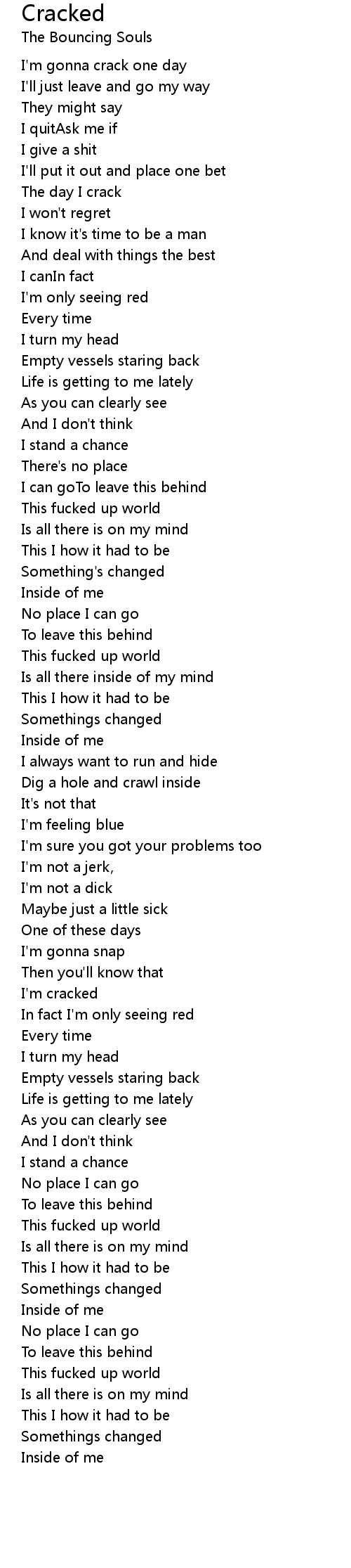 I'm gonna crack one day |