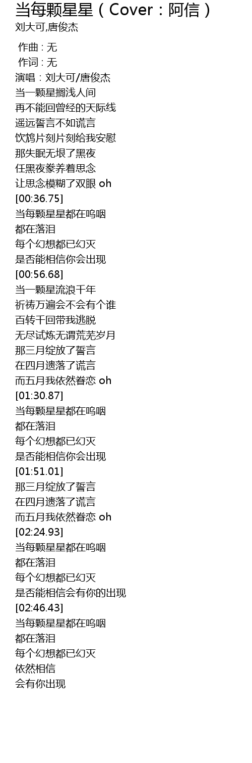 | [02:46.59] | dāng měi kē xīng xīng dōu zài wū yè |