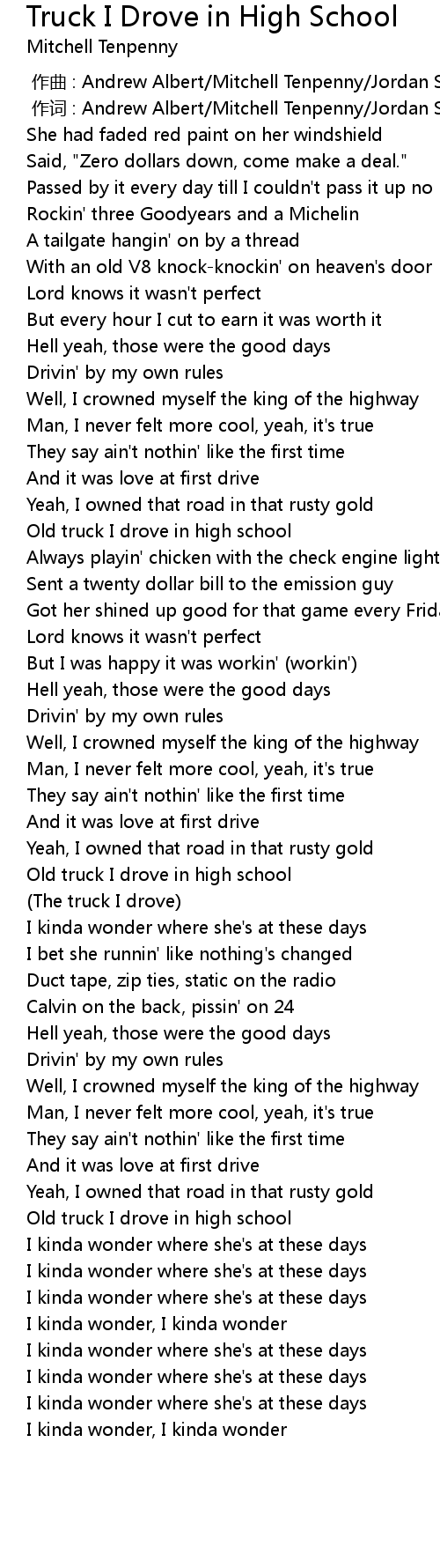 | [00:01.000] | 作词 : Andrew Albert/Mitchell Tenpenny/Jordan Schmidt/Devin Dawson |