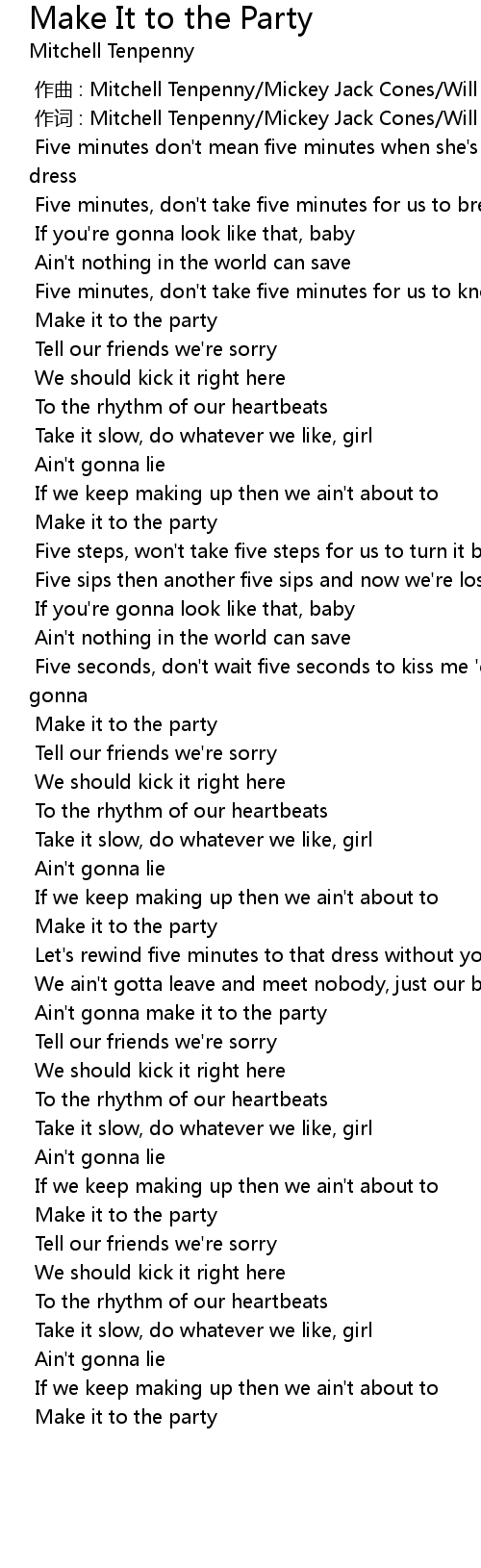 | [00:01.000] | zuò cí : Mitchell Tenpenny Mickey Jack Cones Will Weatherly |