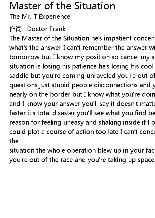 | Song | Master of the Situation |