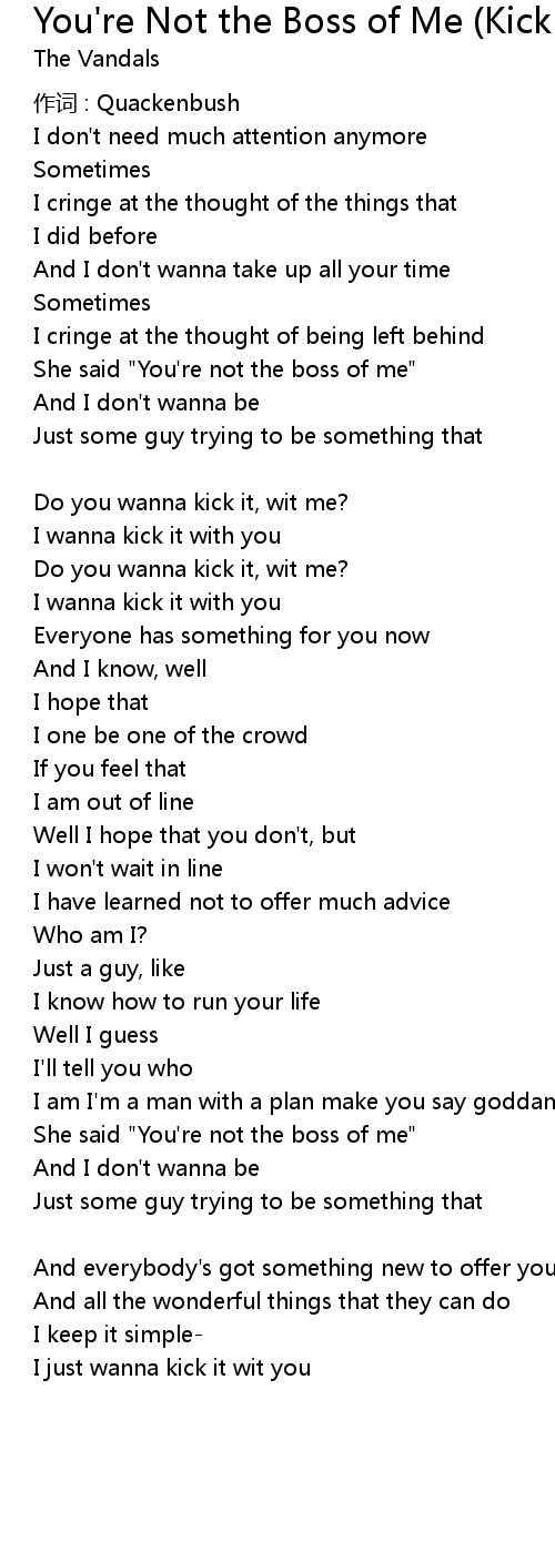 | Song | You're Not the Boss of Me (Kick It) |