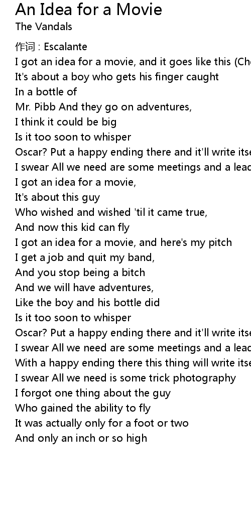| I got an idea for a movie, and it goes like this (Check it out) | |