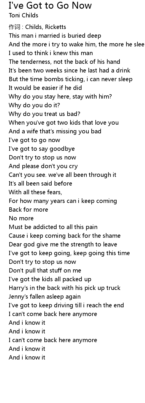 | I' ve got to go now | |