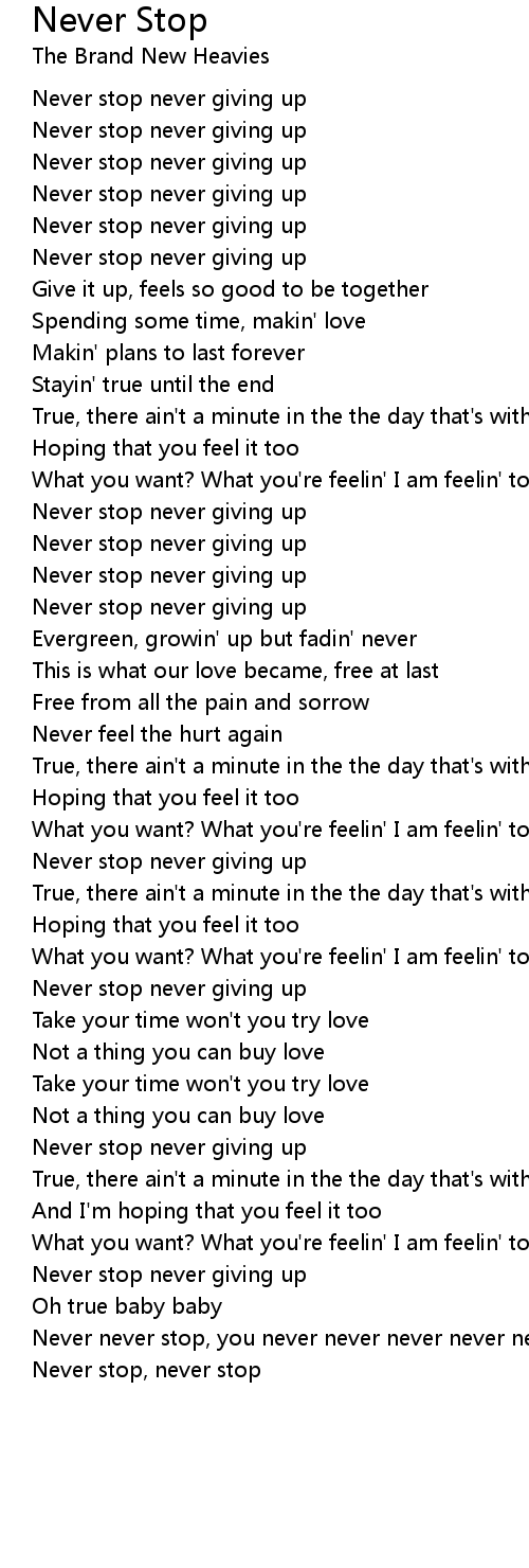 Never Stop Lyrics