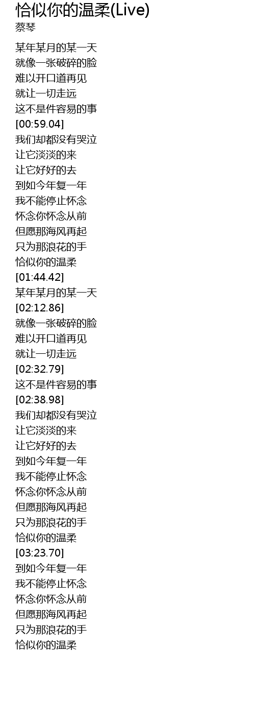 | [03:16.96] | qià sì nǐ de wēn róu |