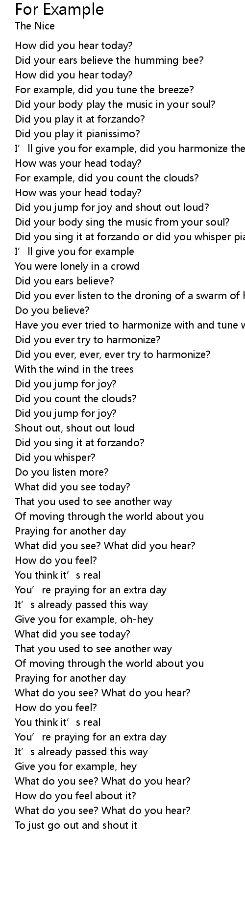 | Song | For Example |