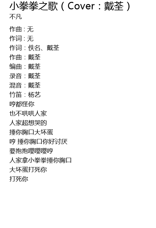 | rén jiā ná xiǎo quán quán chuí nǐ xiōng kǒu | |