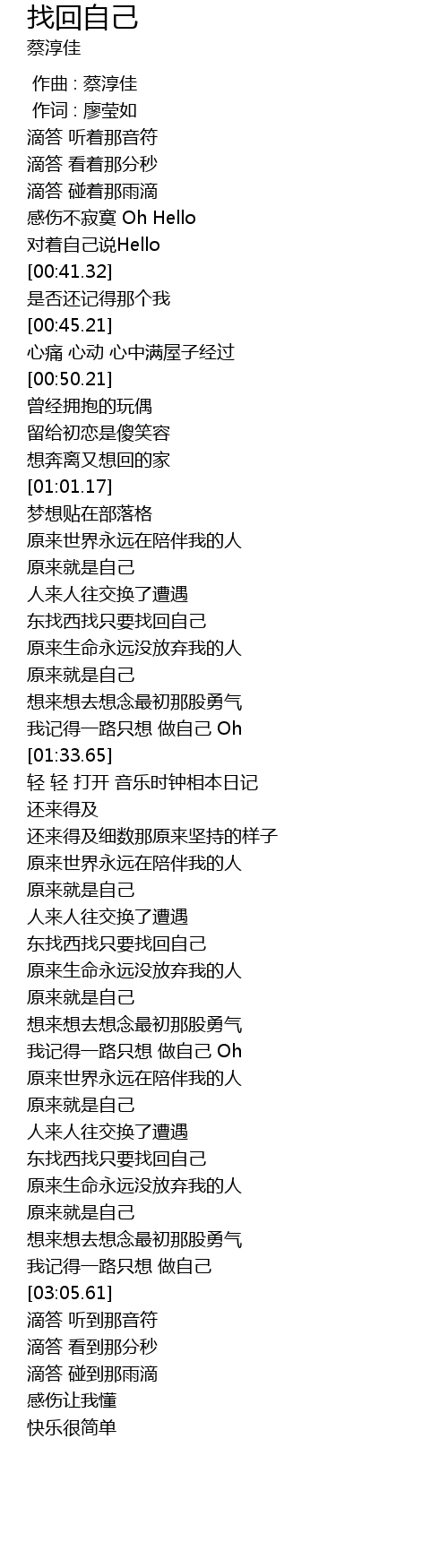 | [01:13.97] | dōng zhǎo xī zhǎo zhǐ yào zhǎo huí zì jǐ |