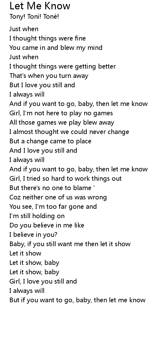 And if you want to go, baby, then let me know |