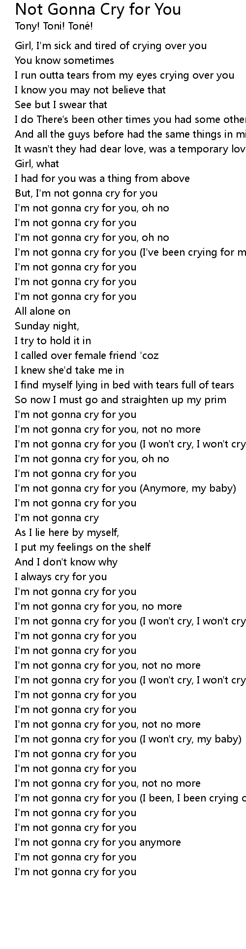 I'm not gonna cry for you (I been, I been crying oh so long) |
