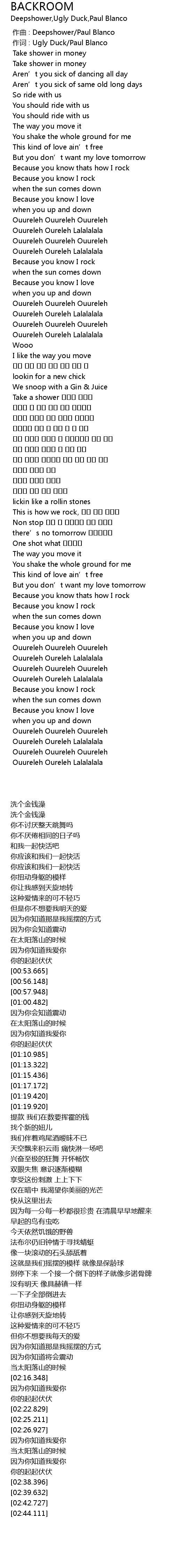 | [00:01.000] | 作词 : Ugly Duck/Paul Blanco |