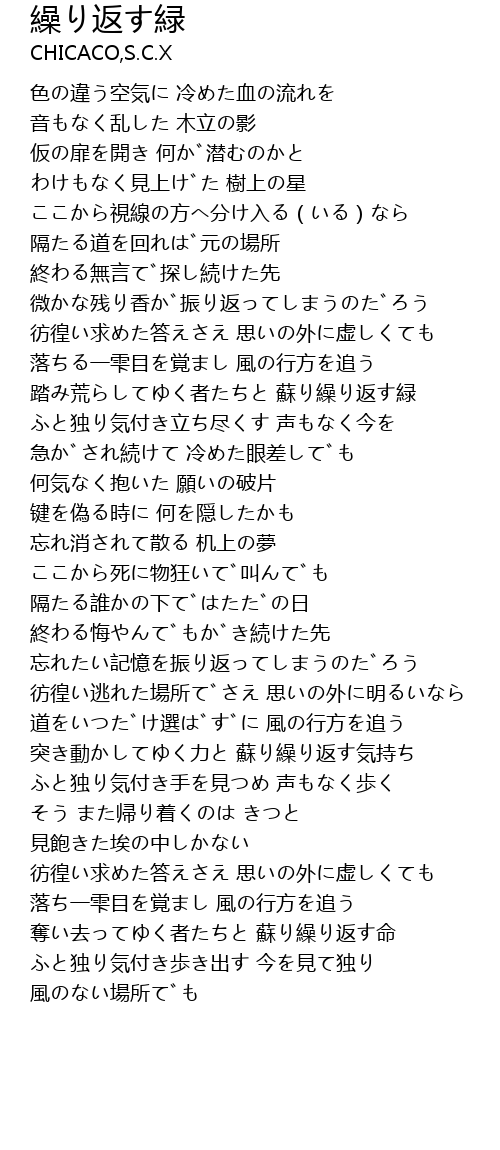 | [01:17.390] | 踏み荒らしてゆく者たちと 蘇り繰り返す緑 |