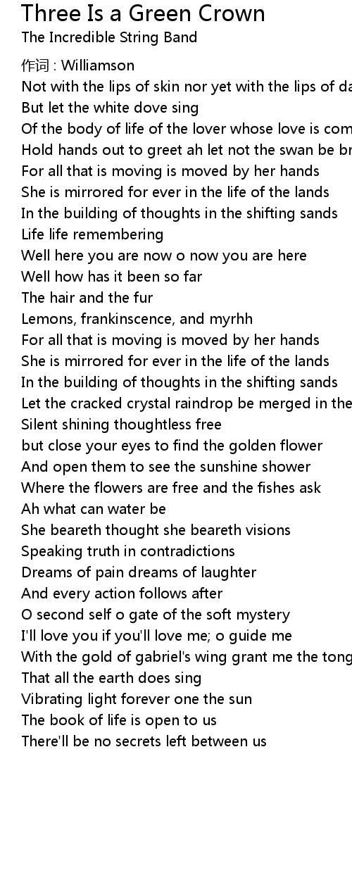 | Song | Three Is a Green Crown |