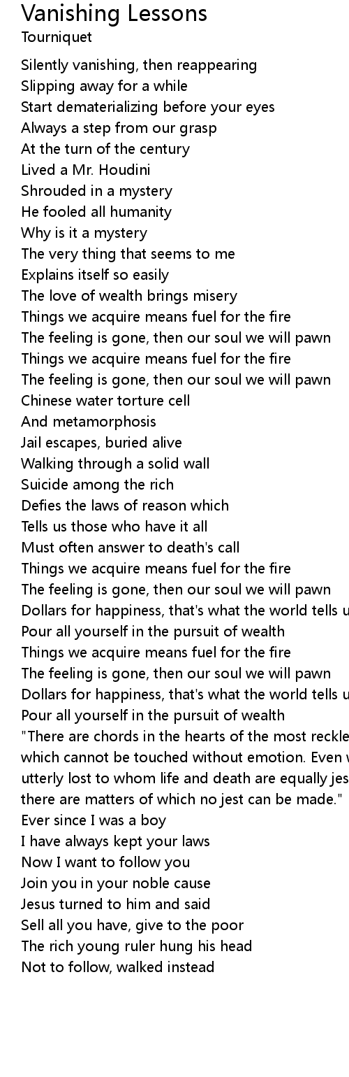 Vanishing Lessons Lyrics