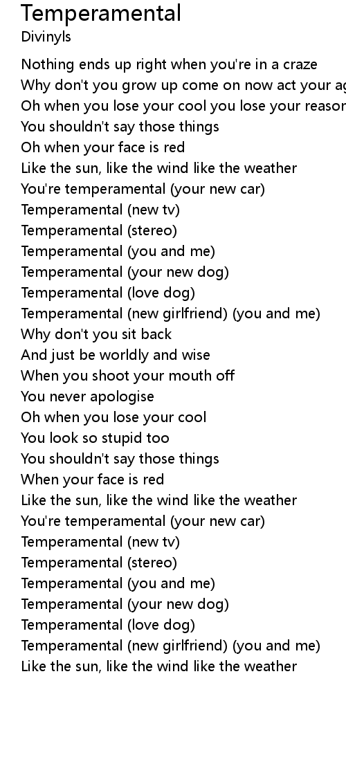 Temperamental (you and me) |