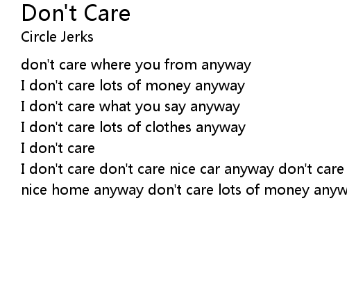 | I don't care don't care nice car anyway don't care nice parent anyway don't care nice home anyway don't care lots of money anyway don't care,don't care |