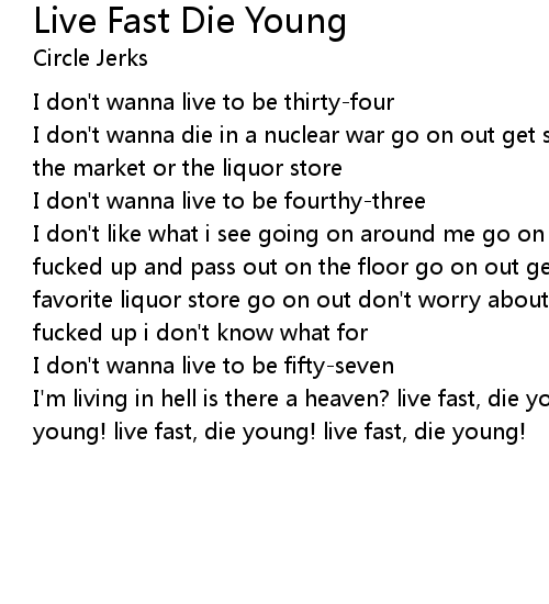 I'm living in hell is there a heaven? live fast, die young! live fast, die young! live fast, die young! live fast, die young! |