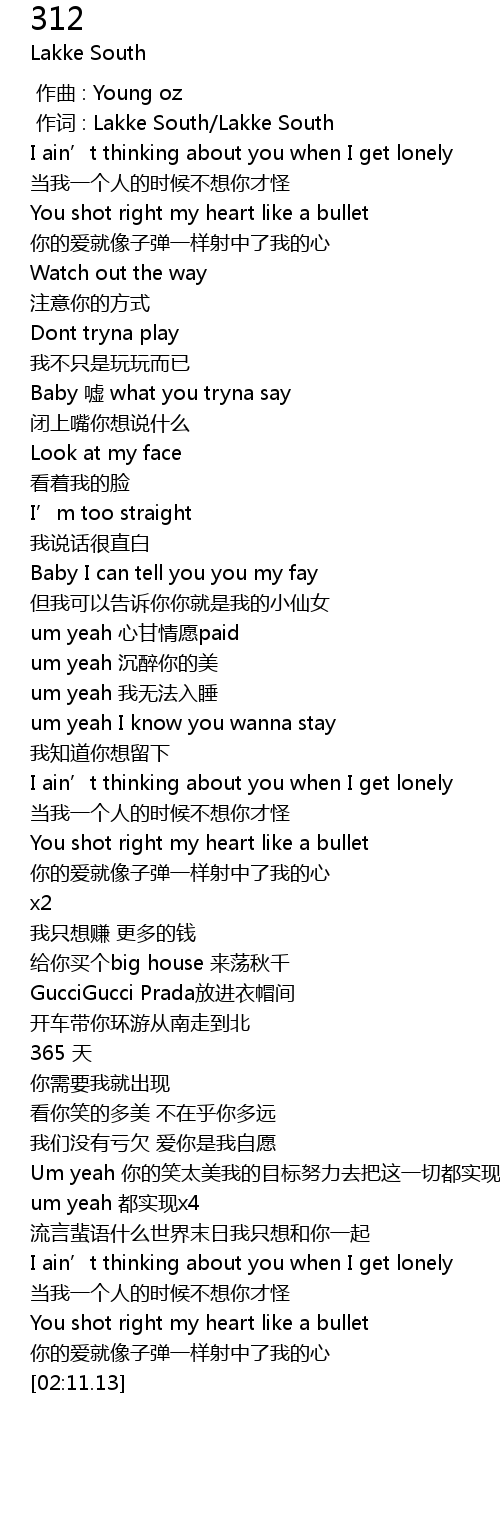 | [00:31.37] | Baby 嘘 what you tryna say |