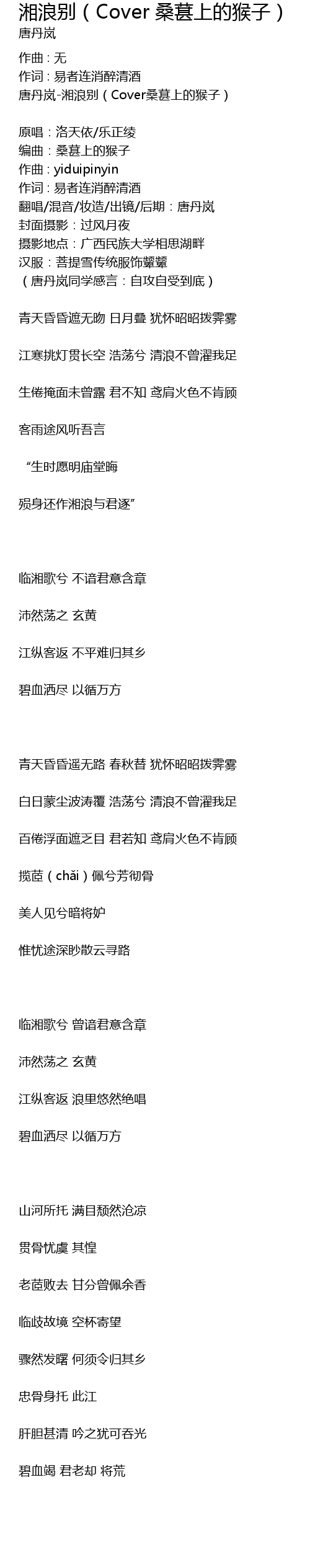 | 唐丹岚-湘浪别(Cover桑葚上的猴子) | |