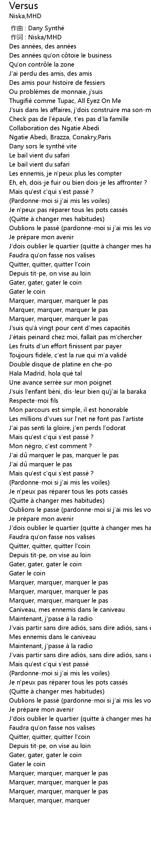 | [02:49.93] | J' dois oublier le quartier quitte à changer mes habitudes |