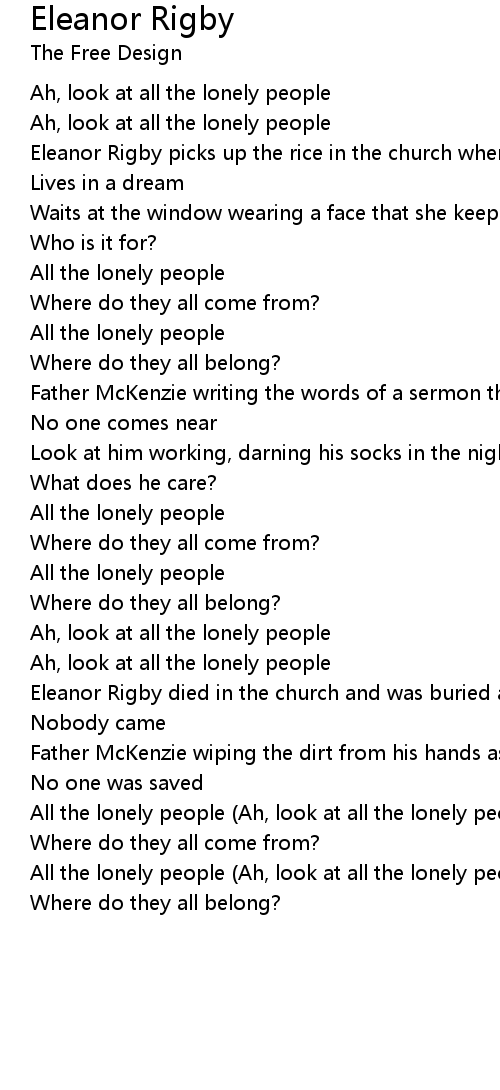 Eleanor Rigby picks up the rice in the church where a wedding has been |