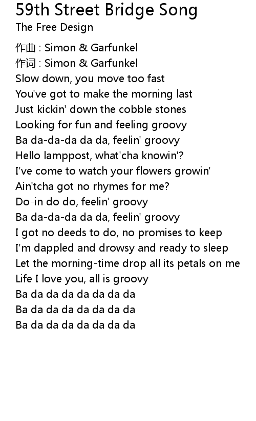 | Song | 59th Street Bridge Song |